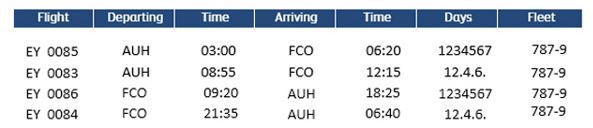 Flight schedule for Abu Dhabi – Rome service effective 4 November