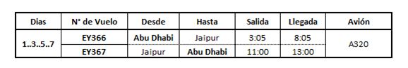 A partir del 16 de junio, Etihad operará vuelos a Jaipur (JAI), India, con cuatro frequencias semanales.